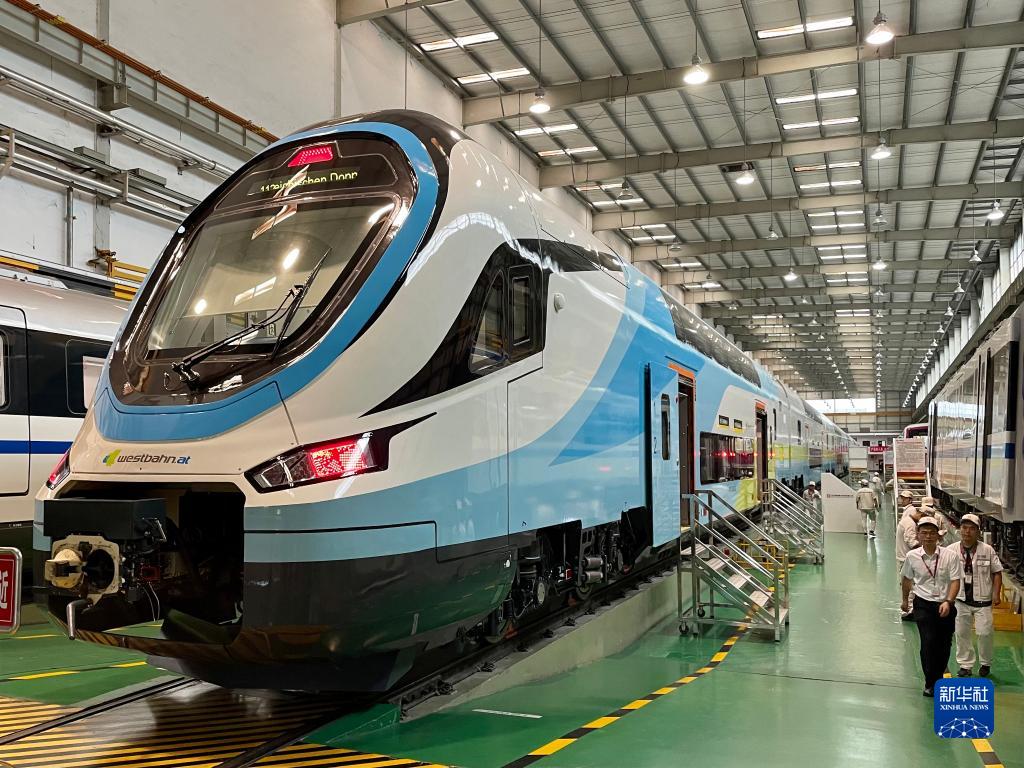 中车株机公司出口欧洲的双层动车组(2021年7月2日摄)。新华社记者 苏晓洲 摄