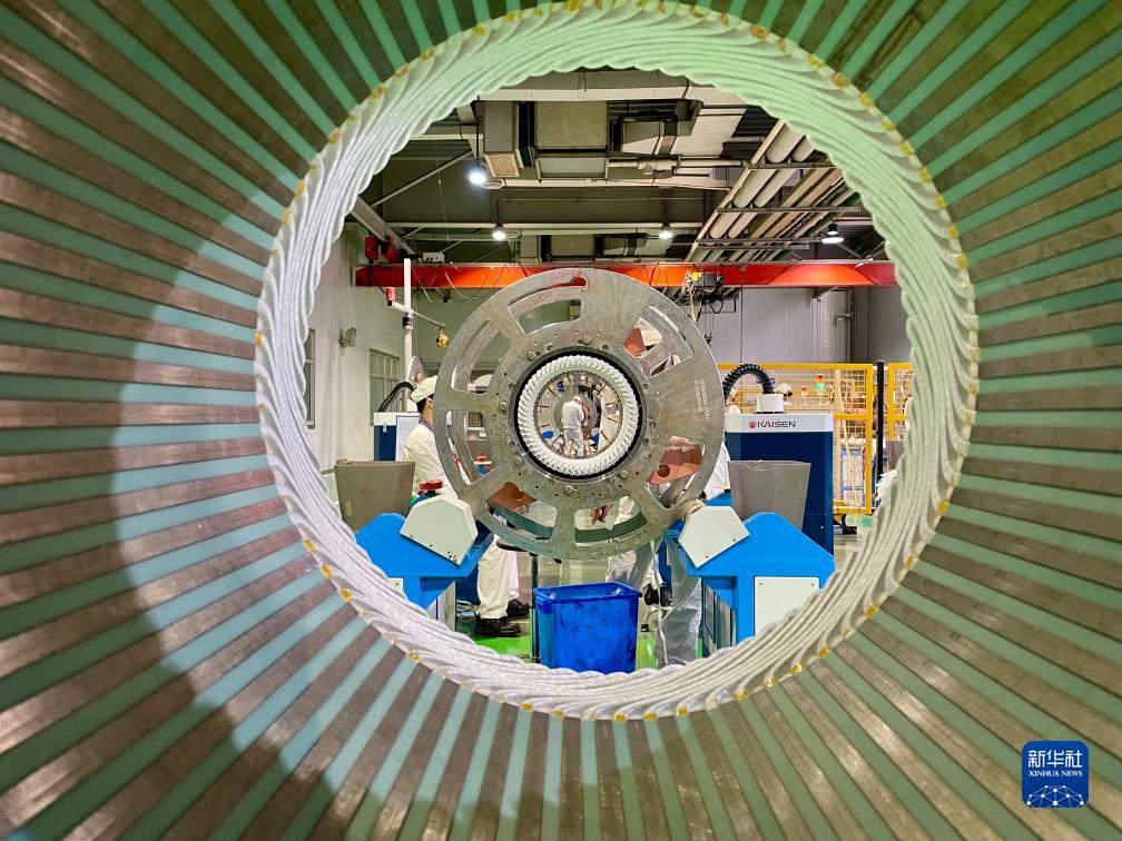 在中车株洲电机公司拍摄的制造中的列车驱动电机(2021年7月3日摄)。新华社记者 苏晓洲 摄