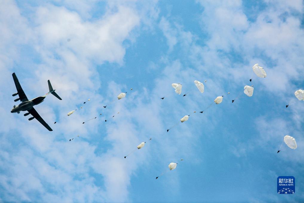 “跳!”一声号令,数十名官兵凌空而降。随后,一辆辆轮式装甲车迅速向目标高地穿插前进,连队突破火力,成功夺控目标高地。
