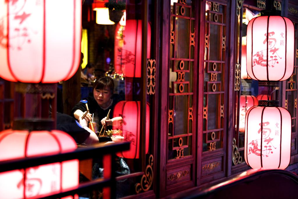 资料图:成都一家火锅店内,顾客在就餐。 新华社记者 王曦 摄
