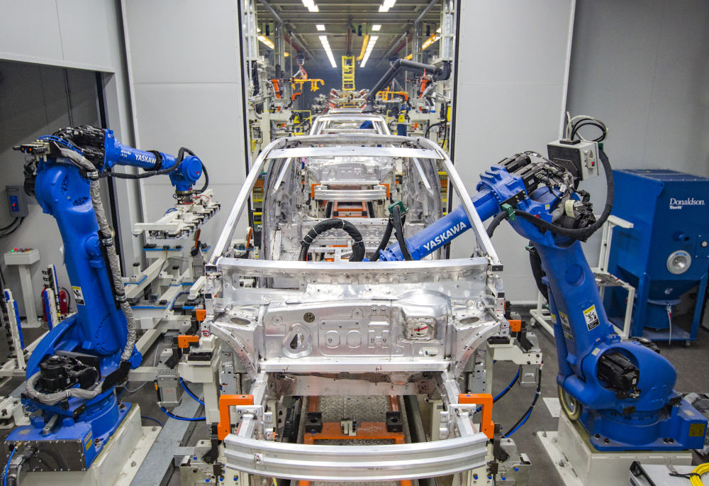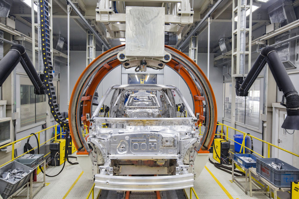 在奇瑞汽车股份有限公司新能源二期工厂总装车间里,一台台机械臂正在抓取汽车玻璃,自动装配至新能源汽车的车身。