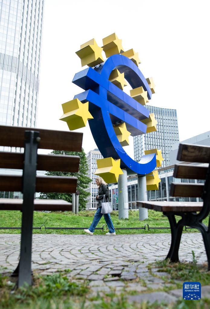 7月27日,一名行人走过德国法兰克福的欧元标志。新华社记者 张帆 摄