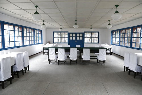 这是2019年3月5日在朝鲜板门店拍摄的朝鲜战争停战协定谈判会场内景。新华社记者程大雨摄