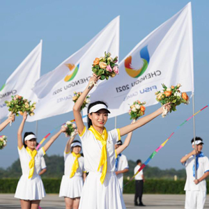 7月28日上午,来华出席成都大运会开幕式并访问的布隆迪总统恩达伊施米耶抵达四川省成都市。这是欢迎仪式现场。新华社记者 江宏景 摄