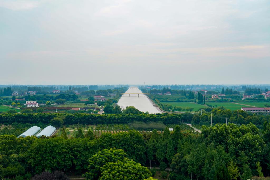 在崇明岛最西端高处俯瞰环岛运河向岛屿深处延伸流淌。(李心怡 摄)