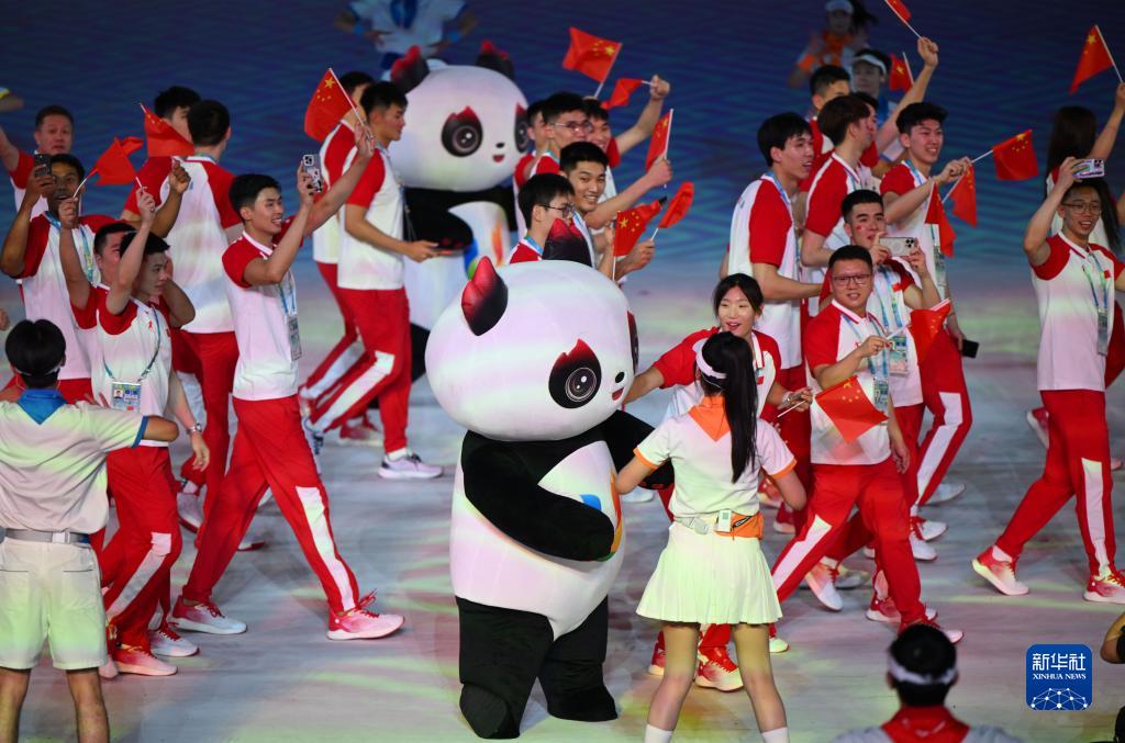 7月28日,中国大学生体育代表团在开幕式上入场。
