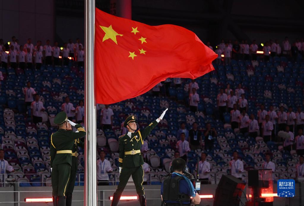 这是7月28日拍摄的开幕式上的升旗仪式。