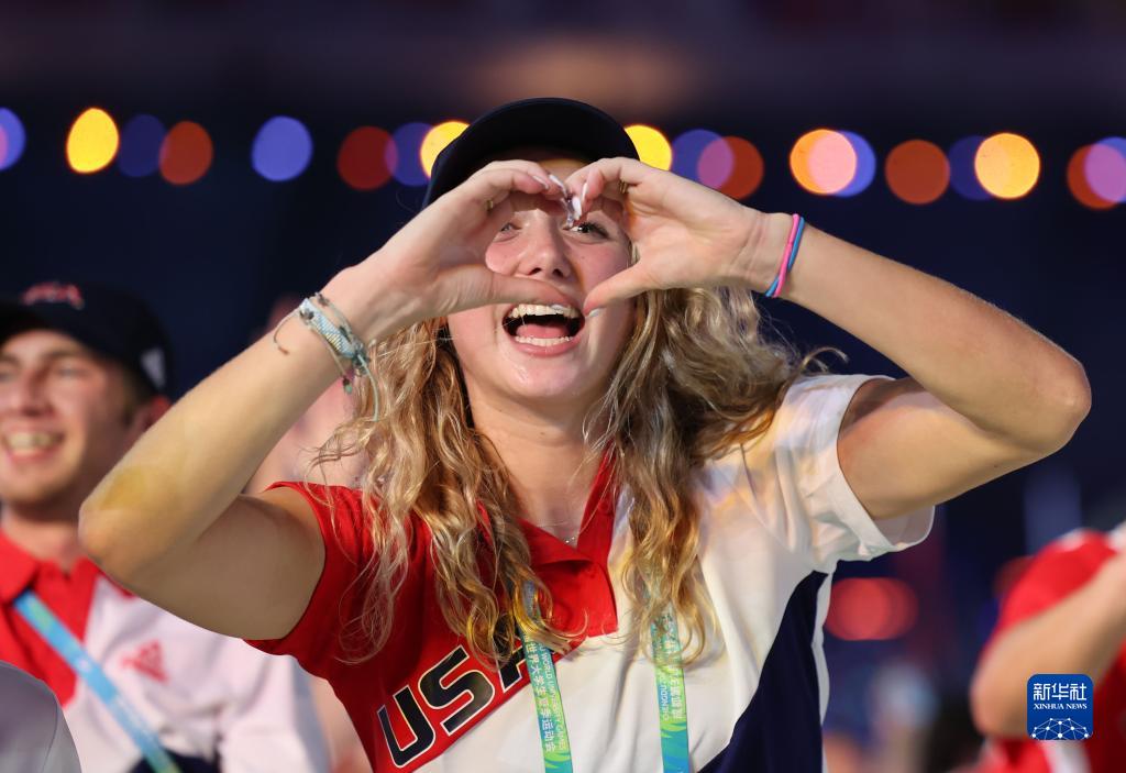 7月28日,美国大学生体育代表团在开幕式上入场。