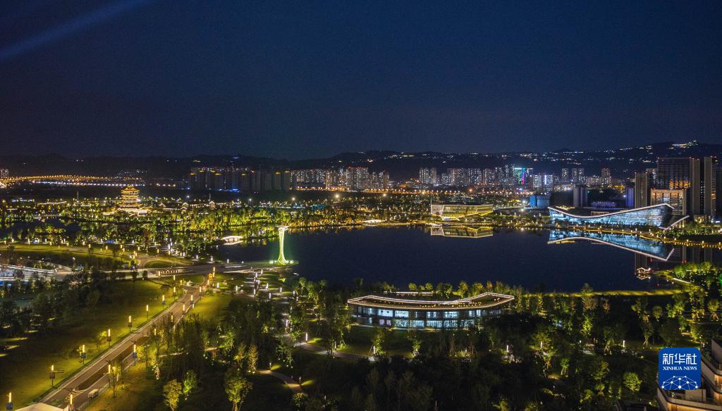 这是7月28日拍摄的东安湖体育公园夜景。