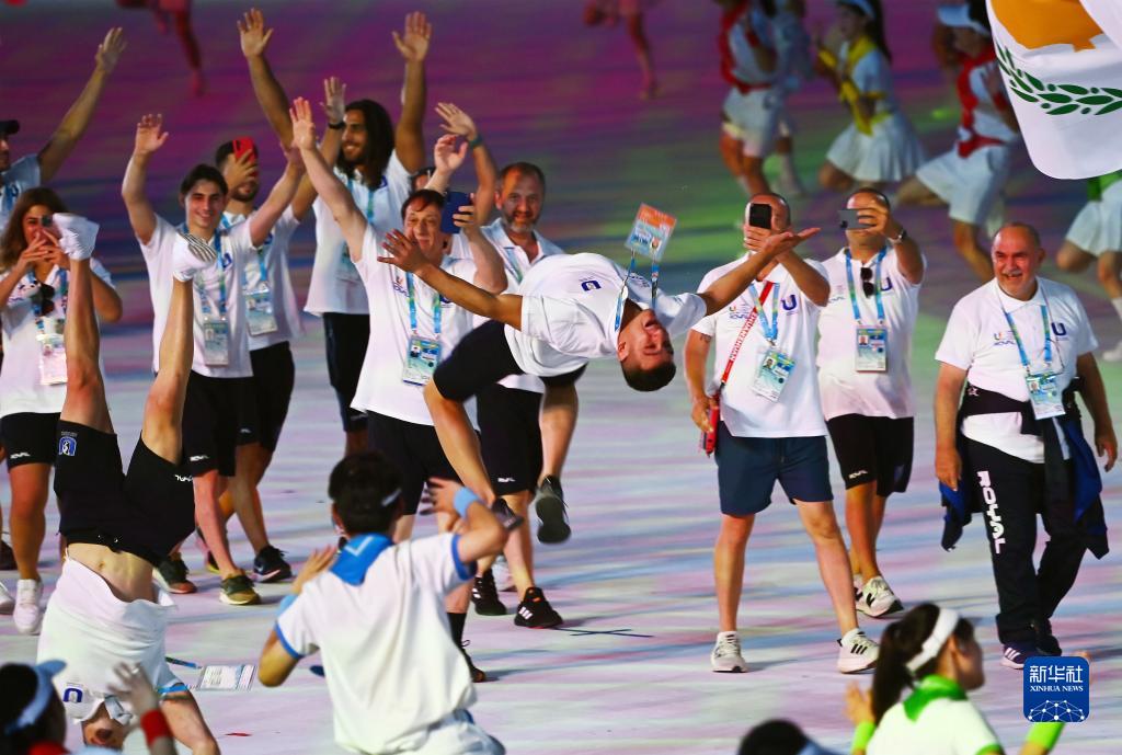 7月28日,塞浦路斯大学生体育代表团在开幕式上入场。