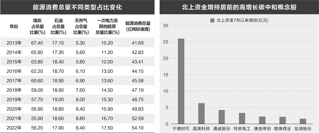 证券时报·数据宝统计,目前A股市场与碳中和相关的概念股超120只。截至7月27日收盘,概念股合计A股市值7.08万亿元,是A股市场最大题材之一。17只股票A股市值超千亿元,包括宁德时代、长江电力、比亚迪、隆基绿能、国电南瑞等。