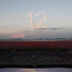 31名火炬手共同点燃的“太阳神鸟”图案圣火盘点火盘光芒四射,盘旋上升,引燃象征太阳神鸟12道金芒的空中焰火,焰火传递,最终点燃场外的主火炬塔。这一刻,全场沸腾,掌声雷动,欢呼声久久不息。