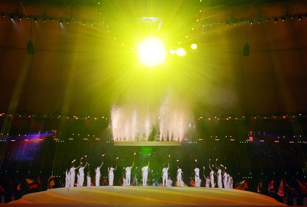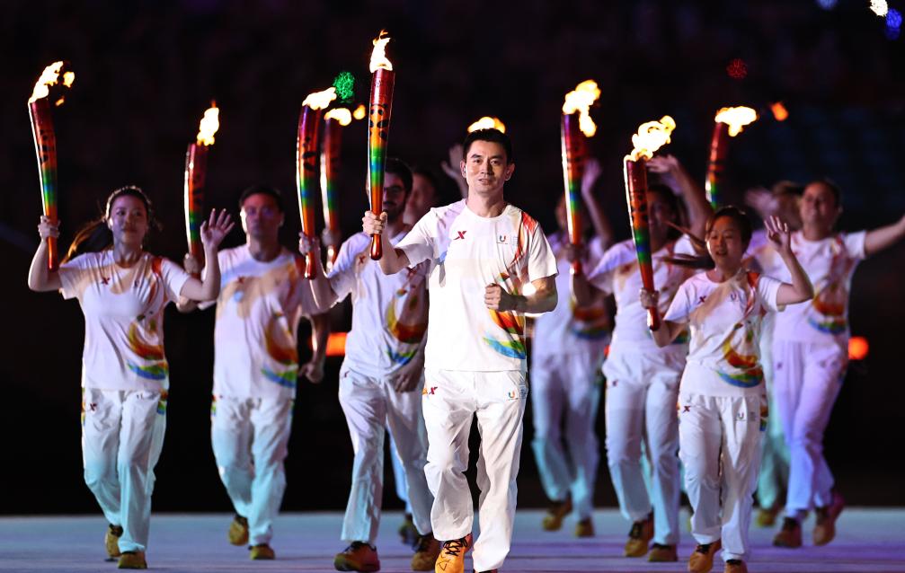 国际综合性体育赛事开幕式的最大悬念往往就是主火炬的点燃方式。当晚,在万众期待中,成都大运会开幕式的点火仪式开始了。