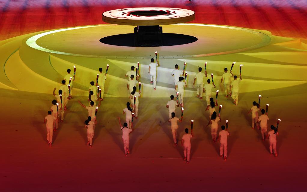 7月28日,火炬手在开幕式上入场。新华社记者江宏景摄