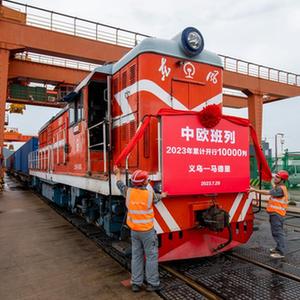 7月29日10时18分,随着X8020次中欧班列从义乌西站缓缓开出,前往西班牙马德里,今年中欧班列累计开行已达10000列,较去年提前22天破万列,发送货物108.3万标准箱,同比增长27%。