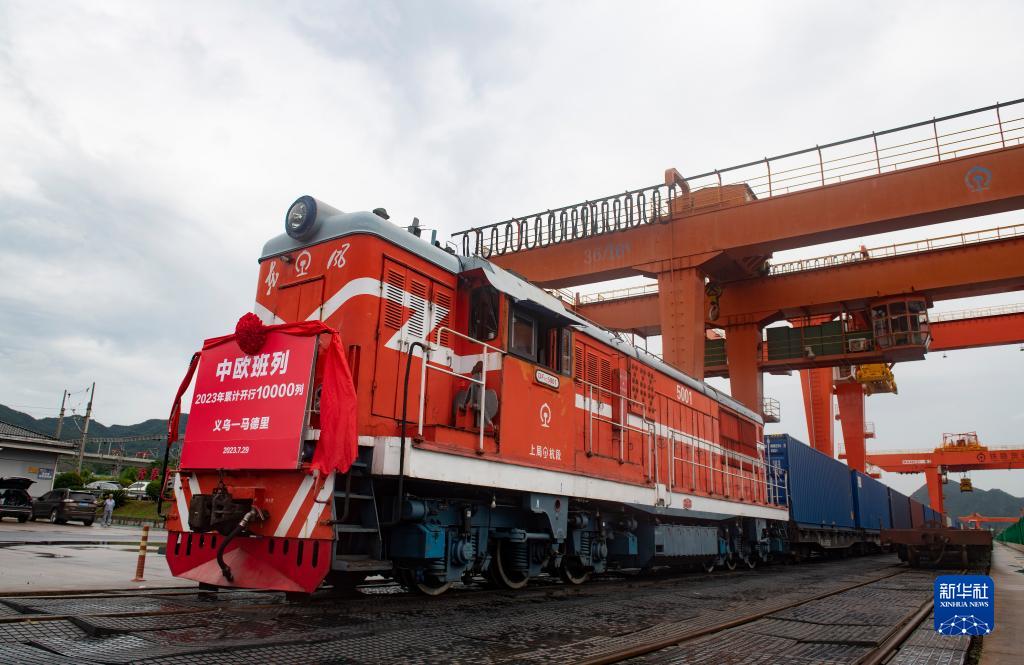 7月29日10时18分,随着X8020次中欧班列从义乌西站缓缓开出,前往西班牙马德里,今年中欧班列累计开行已达10000列,较去年提前22天破万列,发送货物108.3万标准箱,同比增长27%。