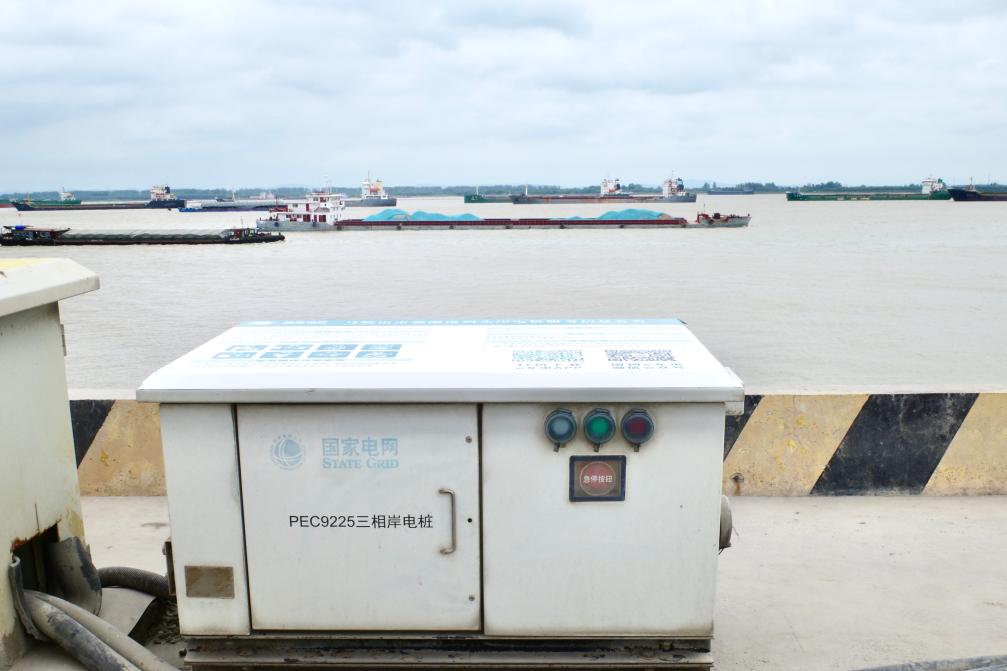 慈湖港长江综合码头上建成的岸电设施。新华社记者栾若卉 摄