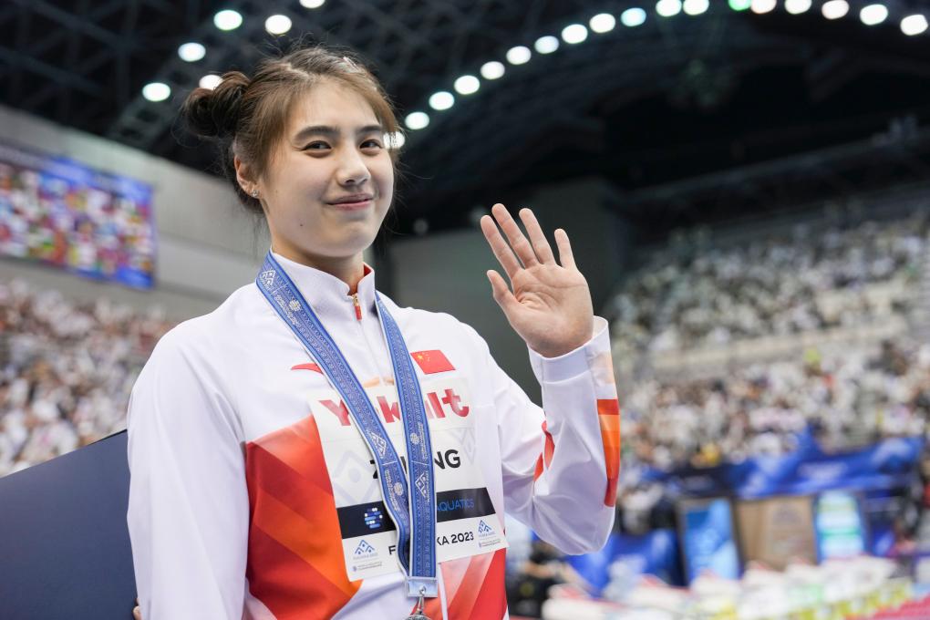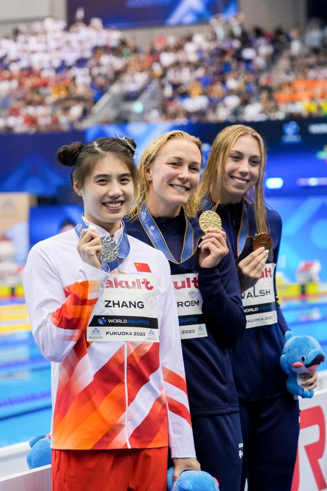 张雨霏在颁奖时梳起了“哪吒头”。她说:“我还是希望自己能再提升一点,和舍斯特伦再拼一拼。”