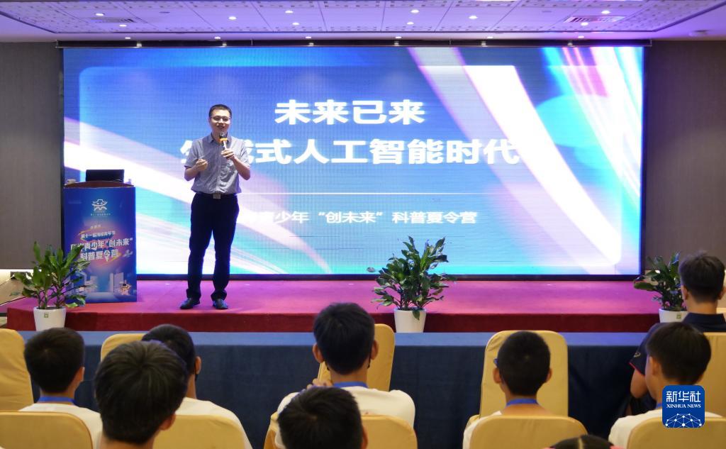 7月30日,参加夏令营的青少年聆听人工智能科普讲座。新华社记者 林凯 摄