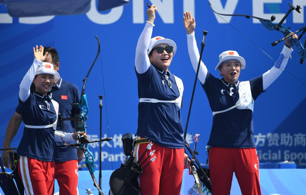 至此,中国队在本届大运会射箭比赛中已收获男子复合弓和女子反曲弓两枚团体金牌。31日,已经跻身四强的周嘉玉将出战女子复合弓个人半决赛,向冠军发起冲击。