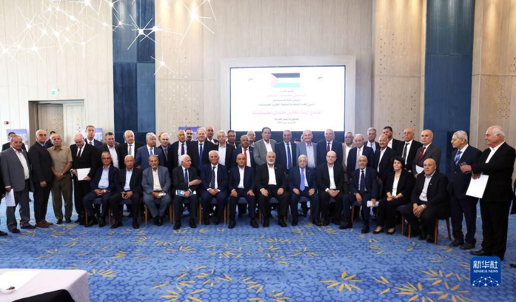 7月30日,与会代表在埃及北部地中海城市新阿拉曼举行的巴勒斯坦各政治派别会议上合影。新华社发(巴勒斯坦驻埃及大使馆供图)