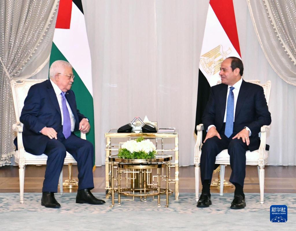 7月31日,埃及总统塞西(右)在埃及新阿拉曼市会见到访的巴勒斯坦总统、巴勒斯坦民族解放运动(法塔赫)主席阿巴斯。新华社发(埃及总统府供图)