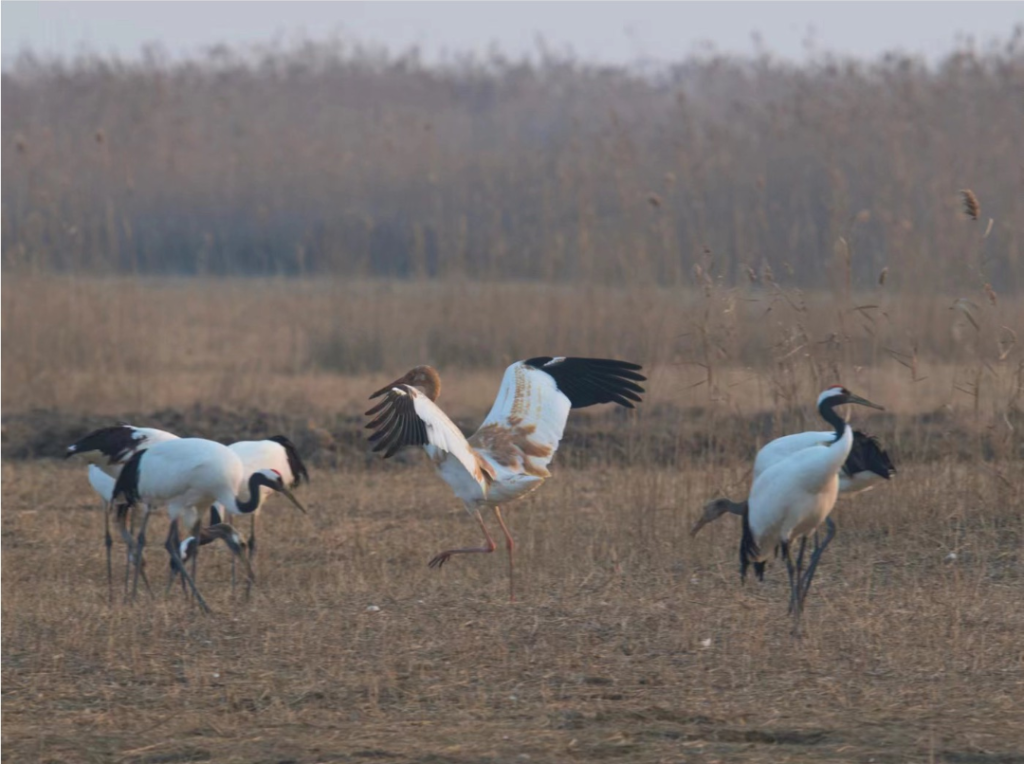 调查团队拍摄到的越冬丹顶鹤。(上海市林业局供图)