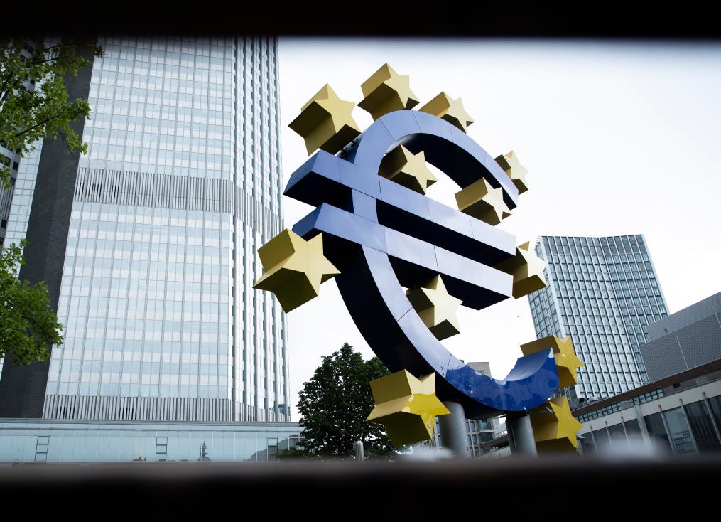 这是7月27日在德国法兰克福拍摄的欧元标志。(新华社记者张帆摄)