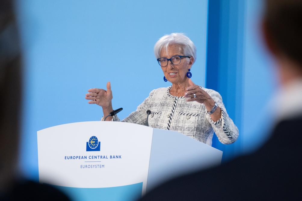 6月15日,欧洲中央银行行长拉加德在德国法兰克福欧洲央行总部举行的新闻发布会上讲话。(新华社发,欧洲央行供图)