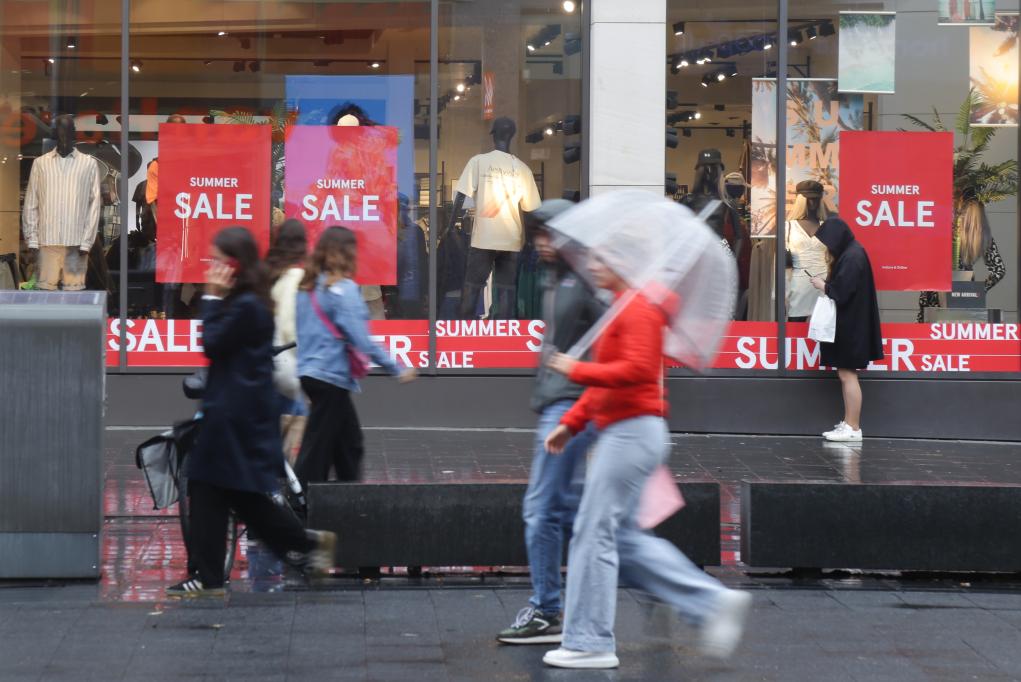 7月31日,在比利时安特卫普,人们从一条商业街走过。(新华社记者郑焕松摄)