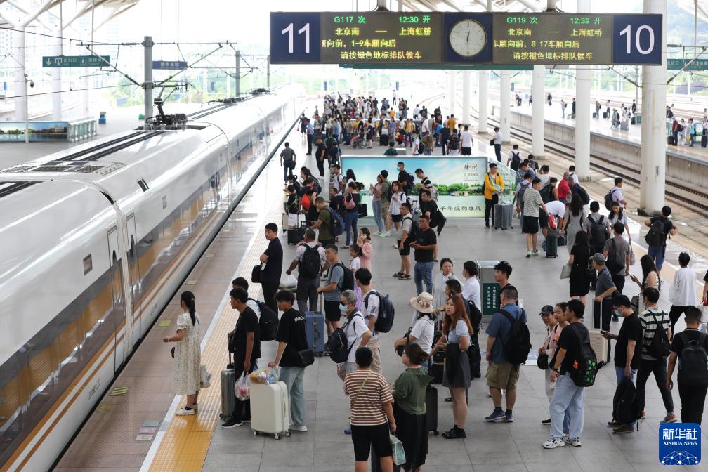 8月1日,旅客在徐州东站站台候车。