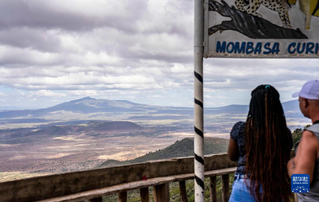 这是1月2日,两名游客在肯尼亚裂谷省的东非大裂谷观景点欣赏景色。