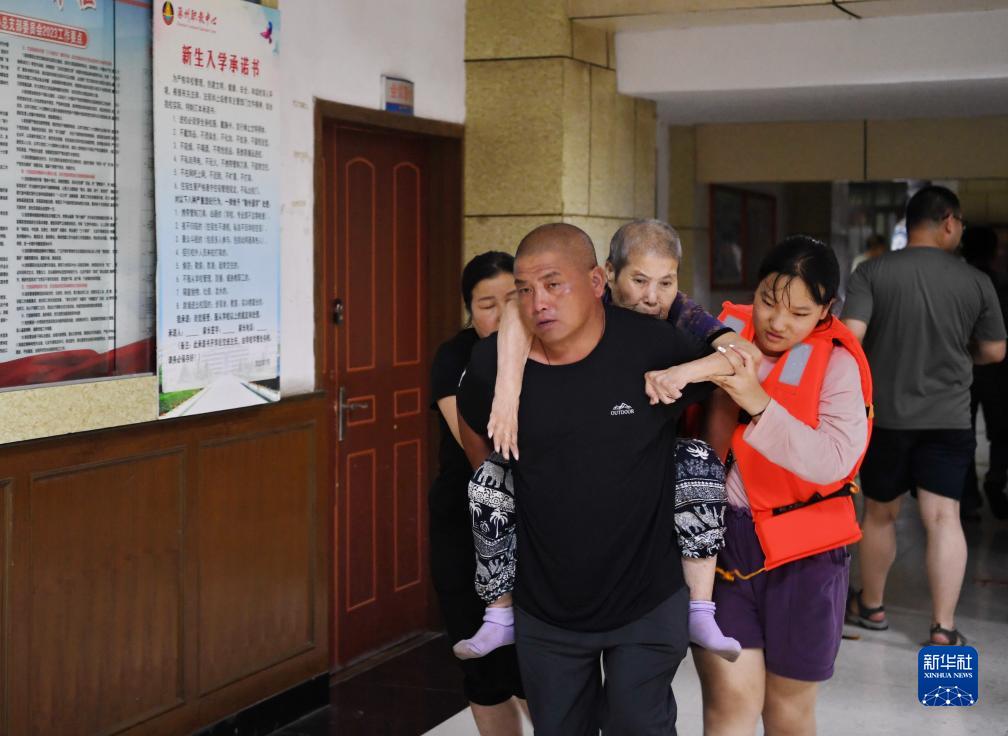 8月1日,安置群众进入河北省涿州市职教中心安置点。