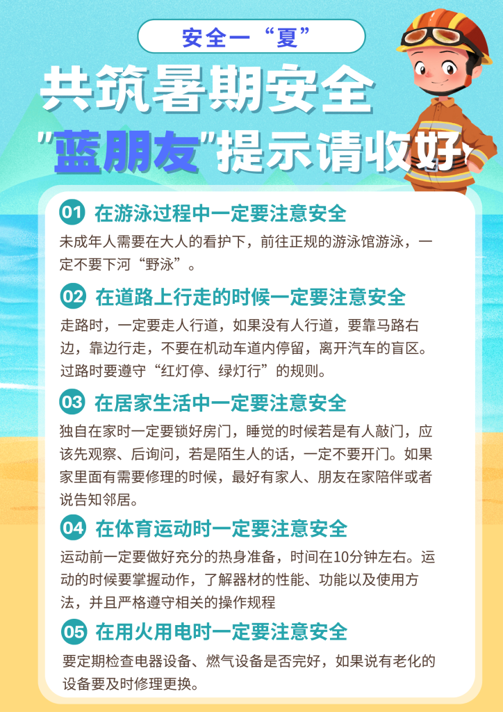 暑期长假到了,云南消防“蓝朋友”在这里提醒各位家长和小朋友,在享受暑期长假的同时一定要注意安全。云南迪庆州消防救援支队应急通信勤务班三级消防士辛余为大家提供了以下安全知识。