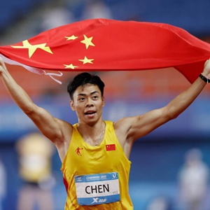 今晚的成都,陈冠锋用几乎相同的方式再次搏得一块铜牌。他在半决赛就跑出10秒16的个人赛季最好成绩,两小时后的决赛上他以10秒17的成绩第三个冲过终点线后,将五星红旗披在了身上。