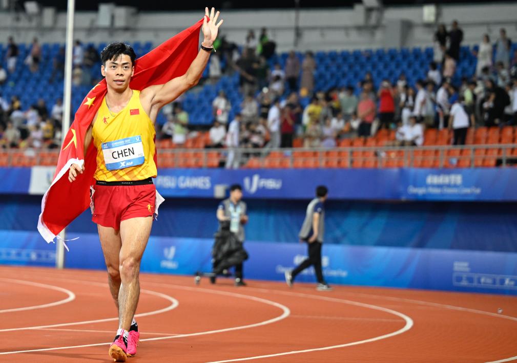 在男子百米半决赛中,陈冠锋创造了10秒16的个人赛季最好成绩,并在决赛中跑出10秒17,取得了和苏炳添在2011年深圳大运会上一样的百米铜牌。“我在预赛结束之后,看到了苏炳添大哥的视频,给我加油打气。前辈的努力和取得的成绩是我们年轻人学习的榜样,未来也会继续努力训练,争取新突破。”陈冠锋说。