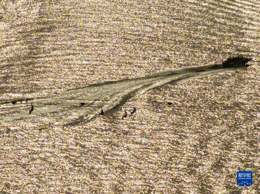 8月2日,游客在宁夏中卫市沙坡头景区体验飞渡黄河、快艇(无人机照片)。