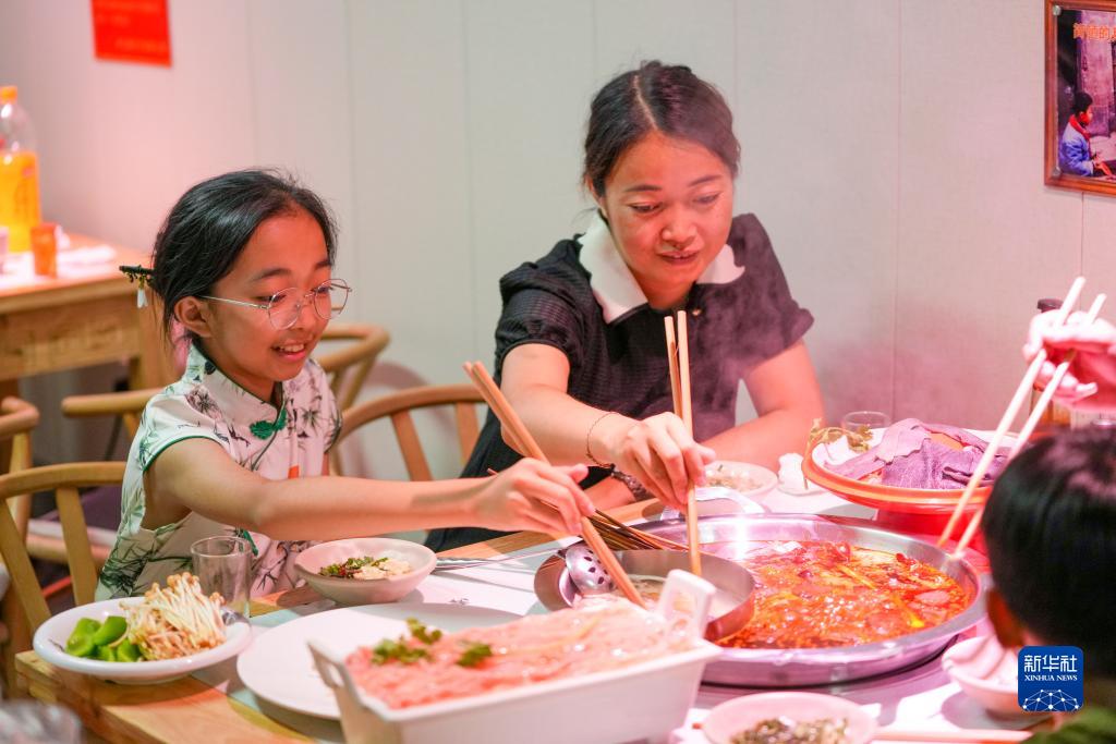 8月2日,人们在重庆九龙坡区杨家坪街道的一家火锅店内就餐。