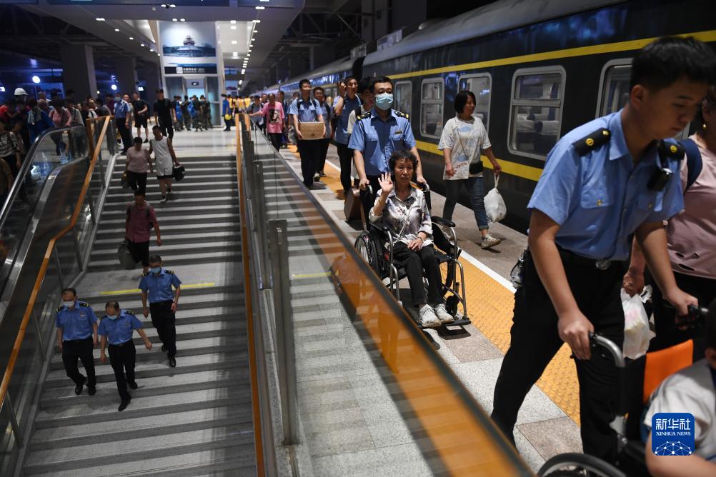 8月3日,K396次、Z180次列车的滞留旅客到达北京丰台站。