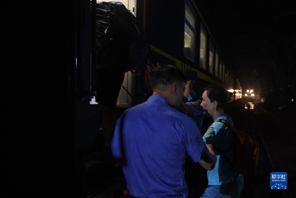 8月2日,Z180次受困列车的旅客登上转运客车。