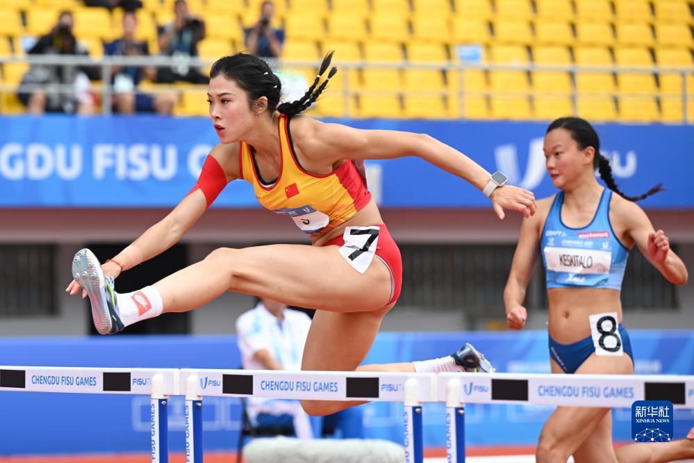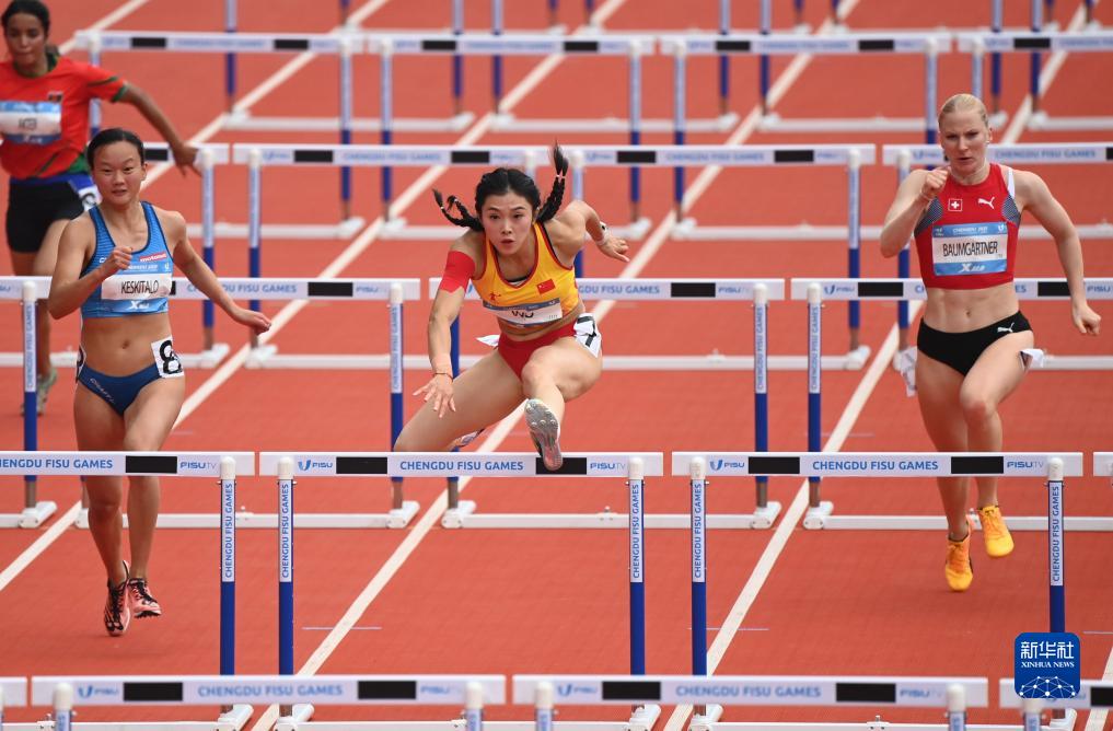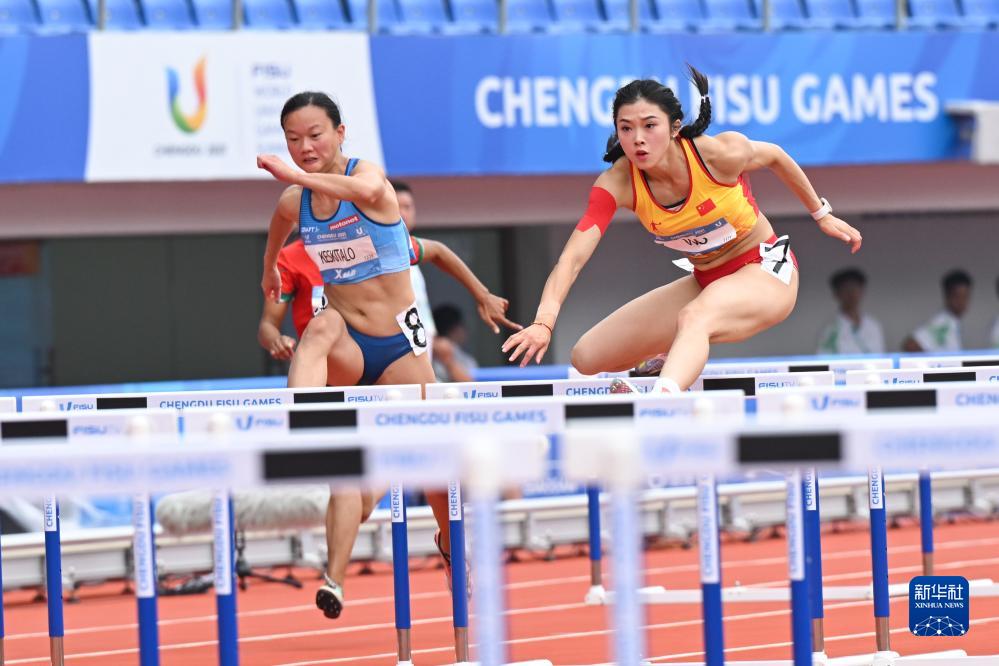 当日,成都第31届世界大学生夏季运动会田径项目女子100米跨栏预赛在成都双流体育中心体育场举行。
