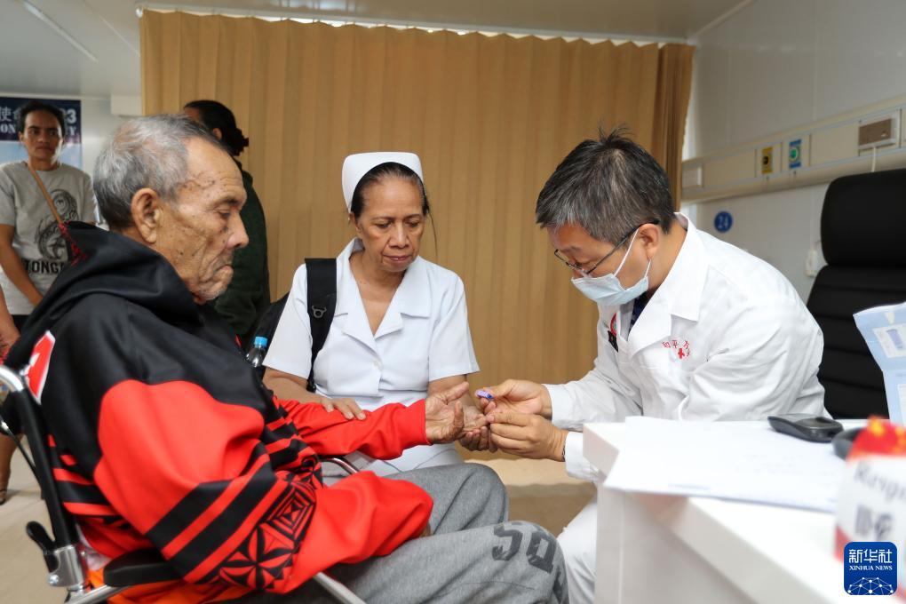 中国海军“和平方舟”号医院船靠泊汤加进行友好访问期间,医院船医生为当地民众和华人华侨提供医疗服务(7月30日摄)。新华社记者 黎云 摄