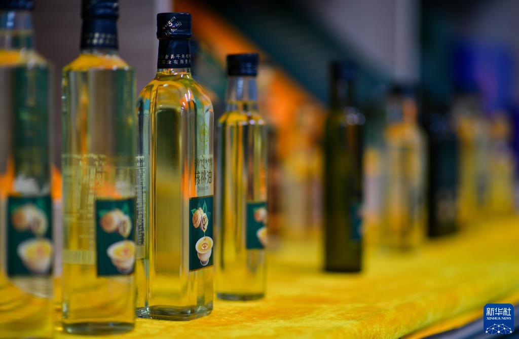 这是加查县一家核桃加工企业的产品展区(7月27日摄)。