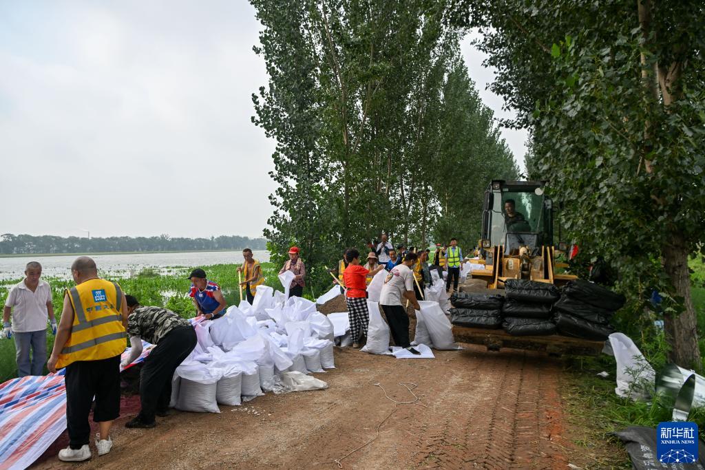 当日,来自中建、中交等多个单位的工人和静海区当地村民共千余人忙碌在大清河天津市静海段南北两岸,持续进行两岸堤坝加高加固工作,以应对大清河河道内不断增长的上游来水。