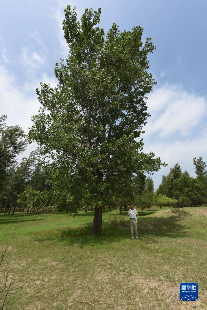 8月2日,百顺和自己种下的第一棵树合影。