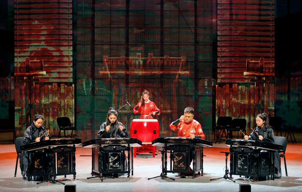 8月3日,来自悦鸣八音室内乐团的乐手演奏《长安社火》。新华社记者 沈伯韩 摄