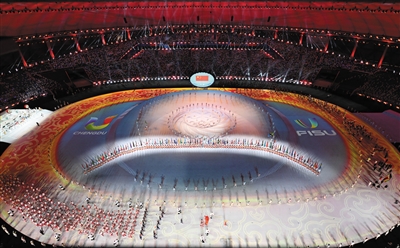 第31届世界大学生夏季运动会开幕式在成都东安湖体育公园主体育场举行。记者 贾浩成 摄
