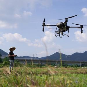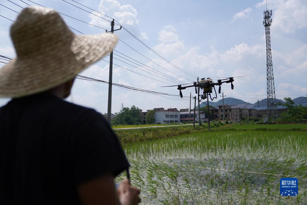 江西省新余市分宜县的农户操作无人机喷洒叶面肥(8月3日摄)。