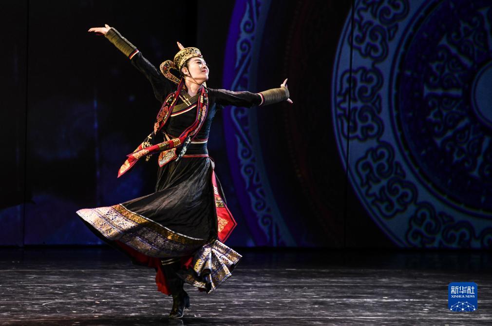 8月3日晚,北京舞蹈学院青年舞团演员在新疆艺术剧院剧场演出。