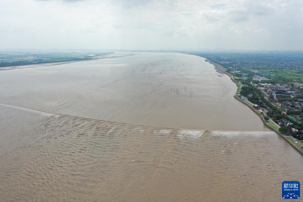 当日是农历六月十八,号称“天下第一潮”的钱塘江大潮在海宁盐官呈现“一线潮”奇观,吸引众多游客观赏。